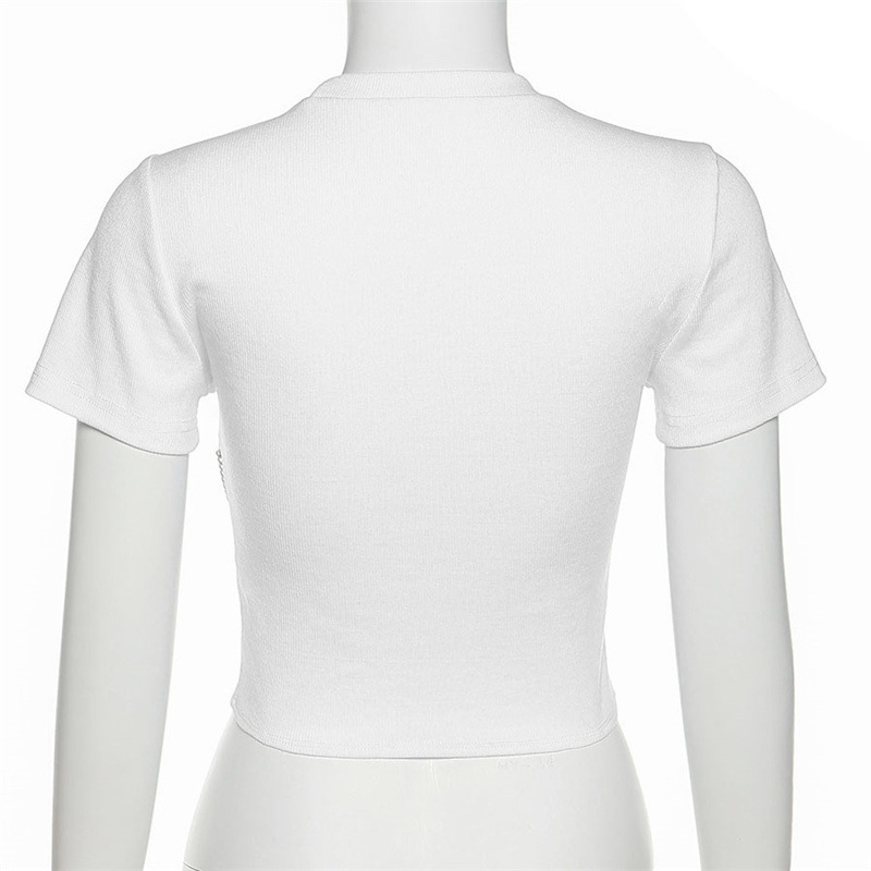 Spring/Summer New Women's Street Trendy Metal Chain Printed Waist Umbilical T-shirt
