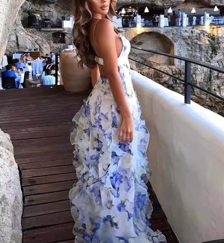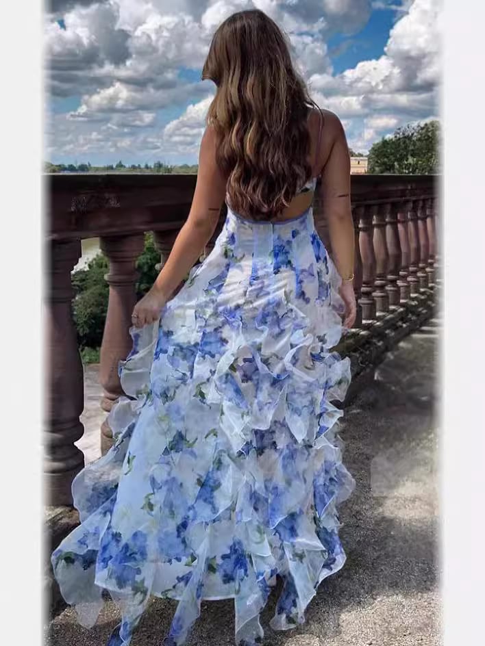 New Spring/Summer Off Shoulder Women's Fashion Chiffon Flower Evening Dress
