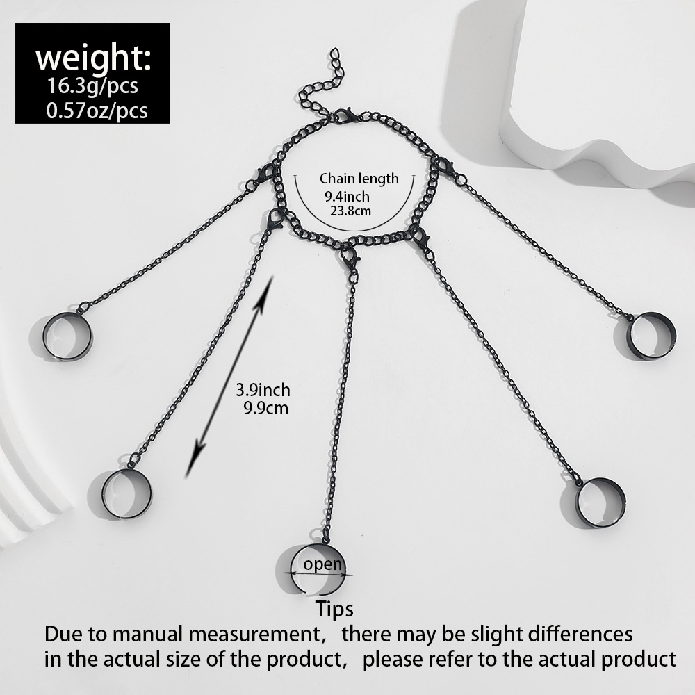 Black/Silver Punk Geometric Chain Wrist Bracelet Rings for Men