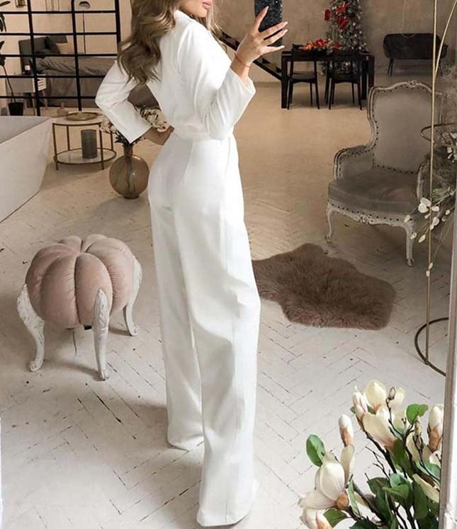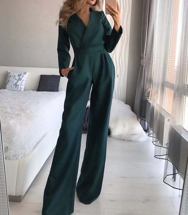 Women Loose Long Sleeve Wide Leg Pants Elegant Rompers Jumpsuits