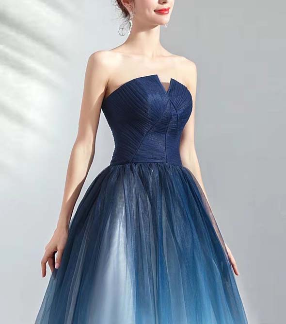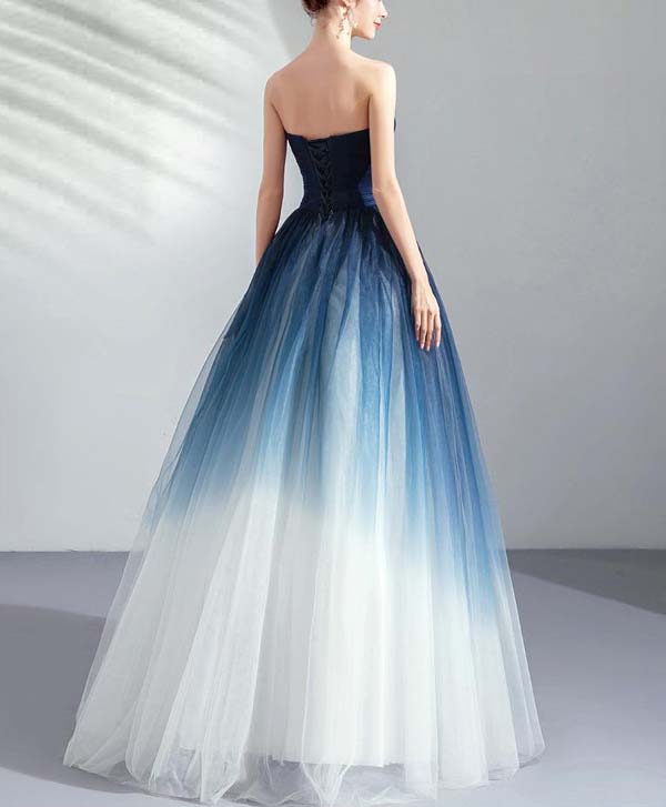 Dreamy Starry Sky Gradient Blue Banquet strapless Fashion Show Wedding Dress Evening Dress