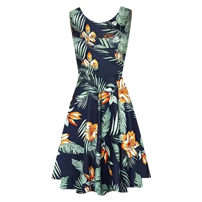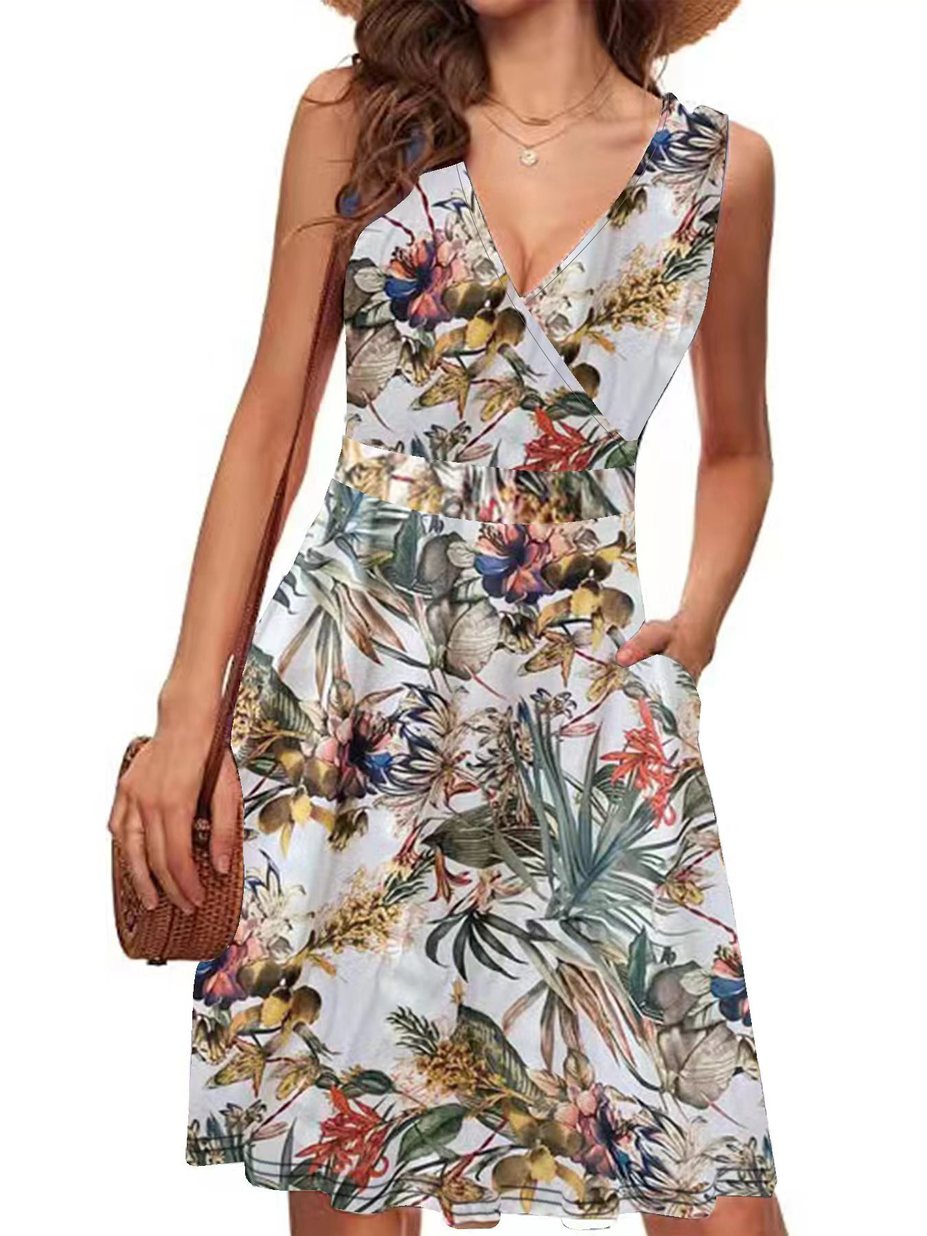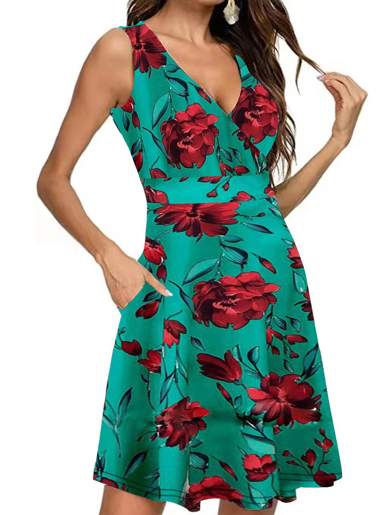 Women Elegant Floral V-neck sleeveless Dress With pockets