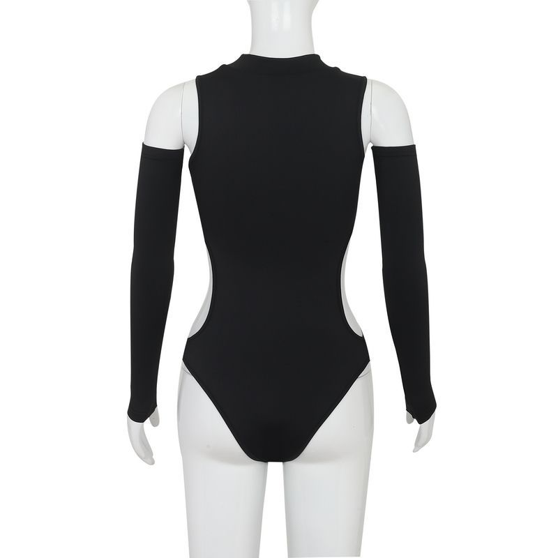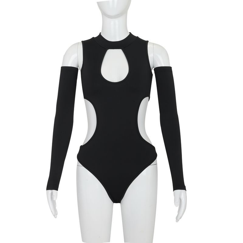 sexy off shoulder perforated hollow tight long sleeve jumpsuit top