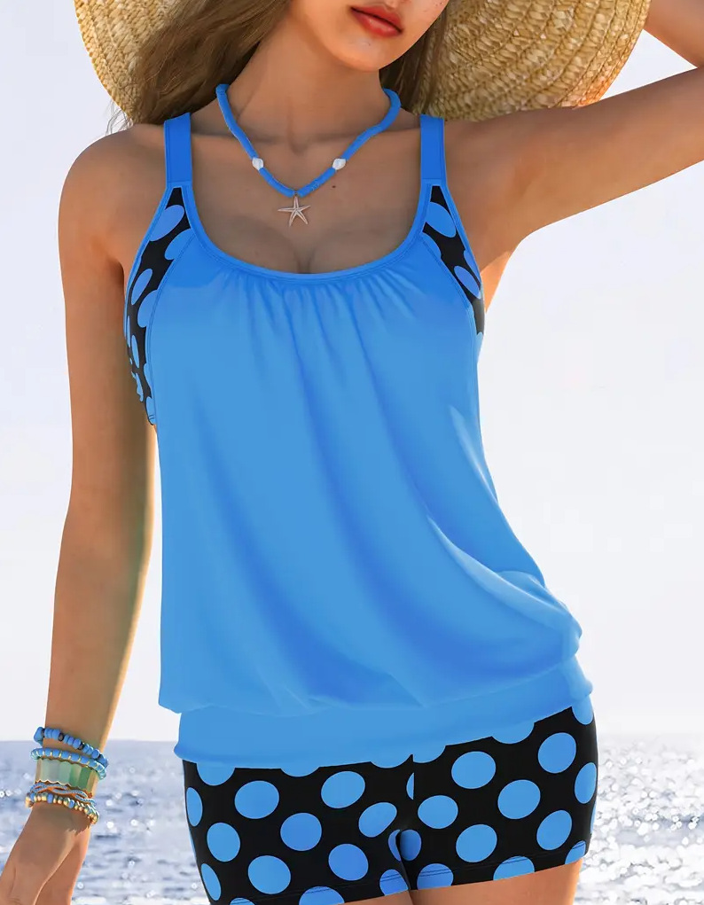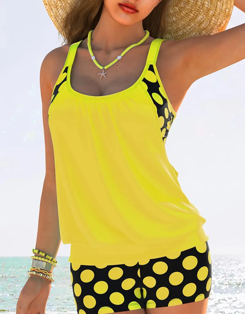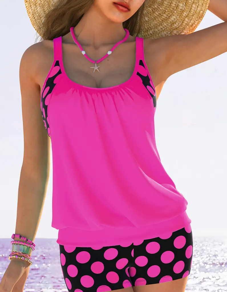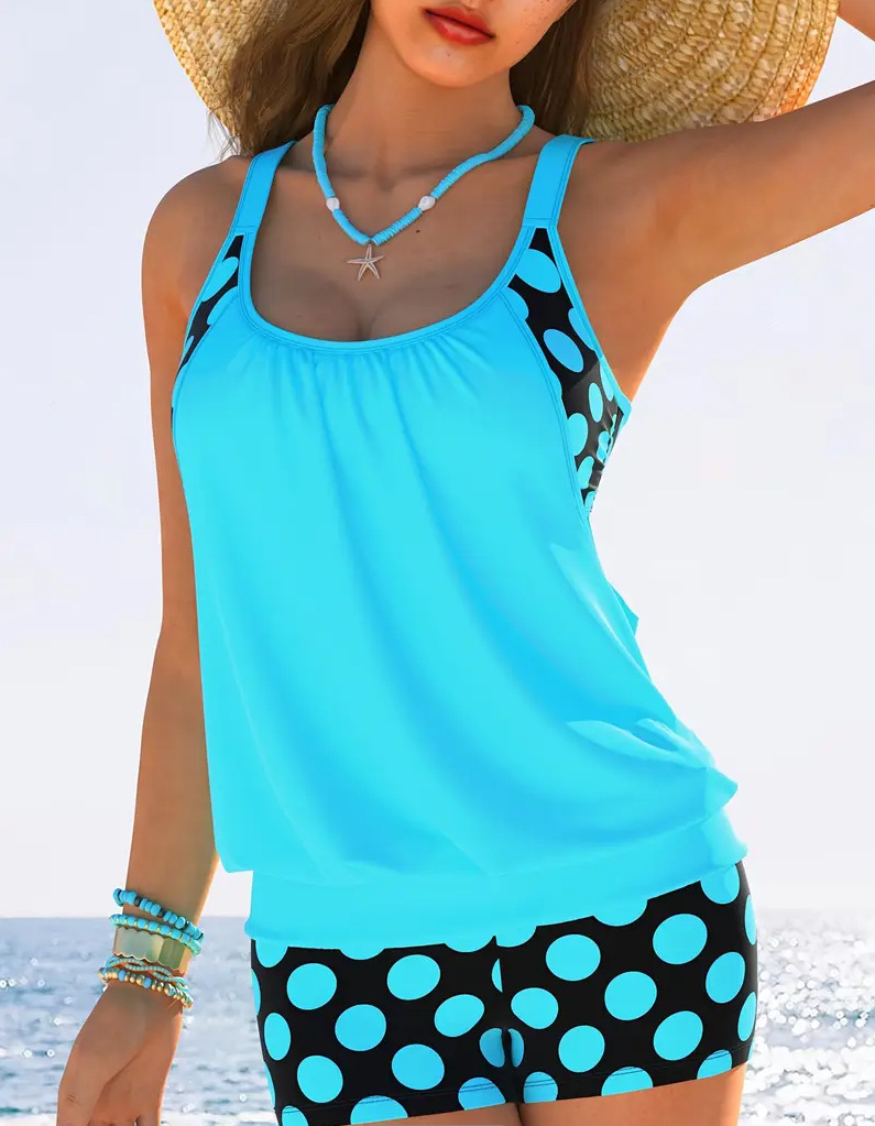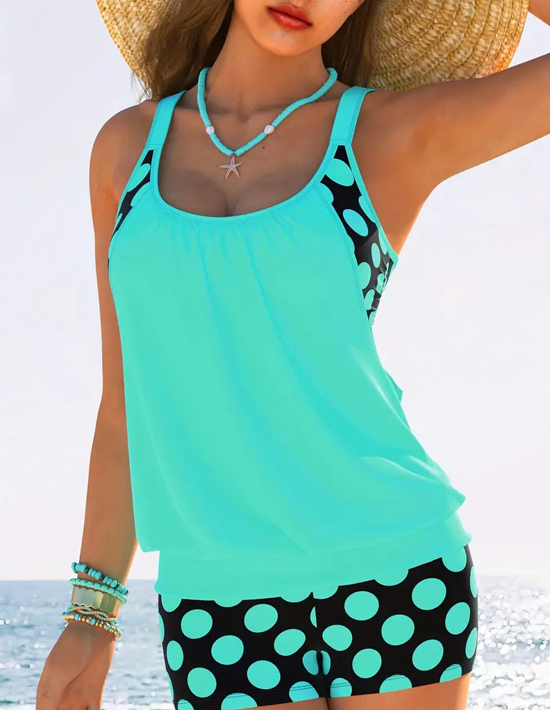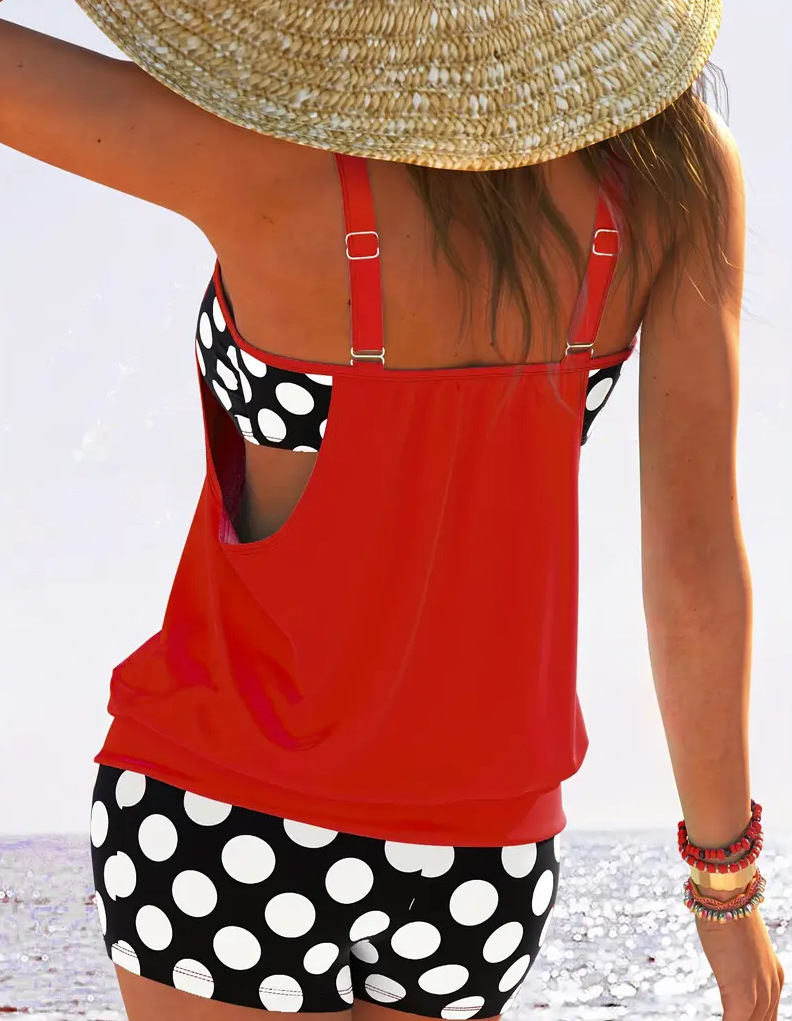 2 Piece Women's Plus Size Colorblock Polka Dot Print Swimsuit Set