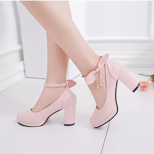 Fashion Pink high heels women pump with bow