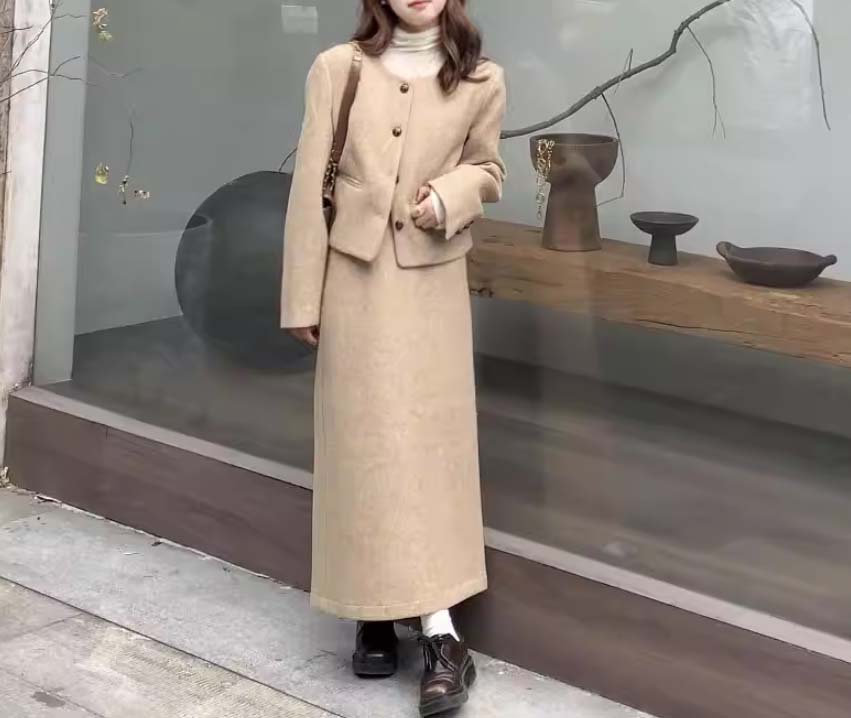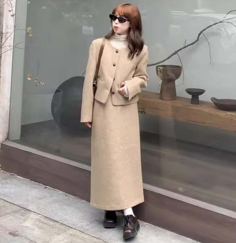 Korean Fashion Short Jacket Long Skirt Two Piece Set