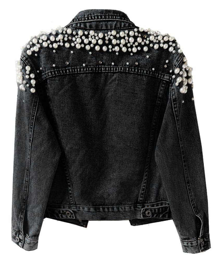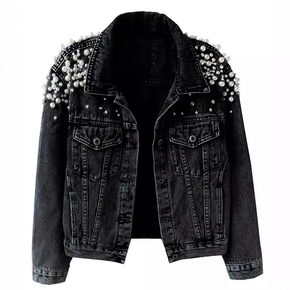 New Embroidered Rivet Pearl Short Denim Jacket for Women